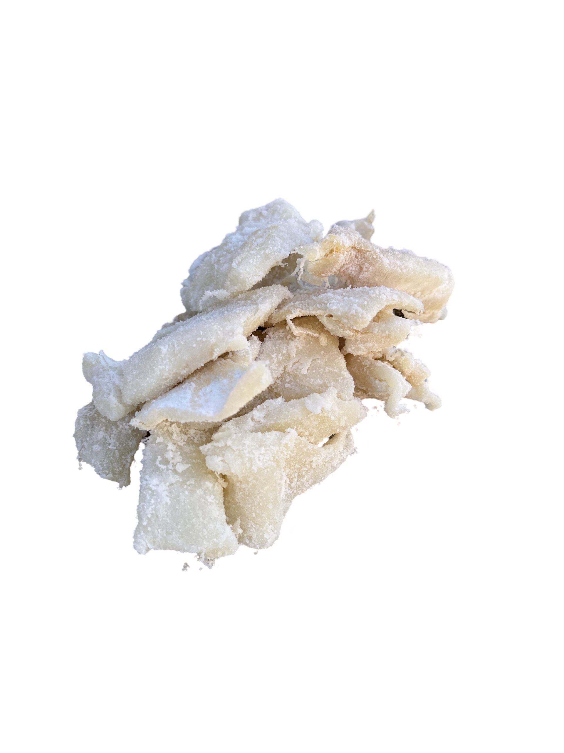 Migas de bacalao, vienen limpias enteras, no se tira nada.Tienen un facil proceso de desalado ya que en 24h estan listas para cocinar.